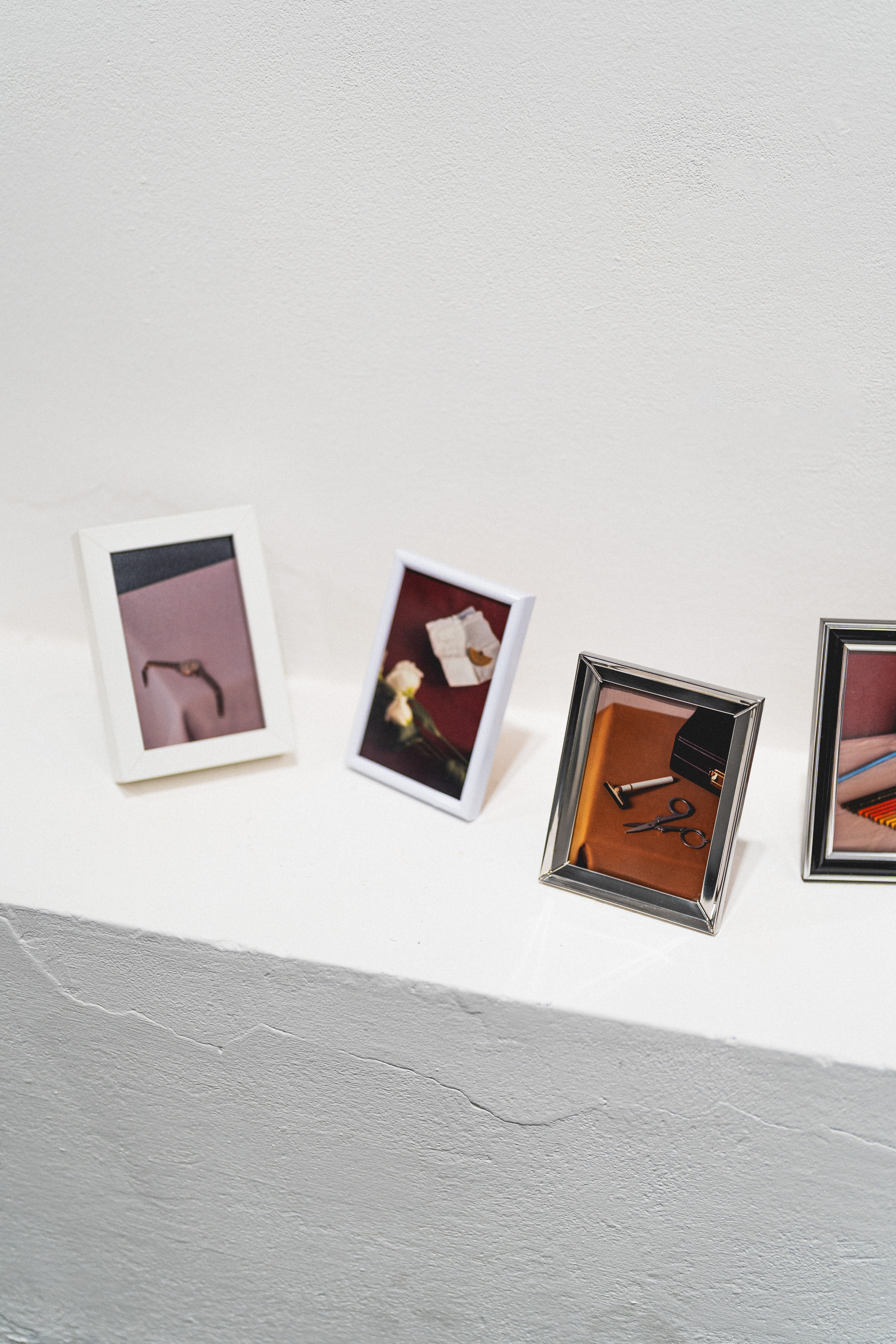 Transité estas vivencias a lo largo de los años acompañada del medio artístico, fundamentalmente a través de la intersección entre imagen y memoria. Fue así como llegué a esta serie fotográfica, explorando el recuerdo a través de la escenificación de objetos en un telón colorido que los aislaba de su contexto original, a modo de retratos o pequeños altares en los que, sin embargo, hay algo que falta. A través de ese vacío, los bodegones exploran la ausencia y la naturaleza huidiza de la memoria. Los objetos actúan como mediadores de una historia a la que yo llego tarde y cuya capacidad para narrarla es limitada porque puede ser alterada fácilmente.